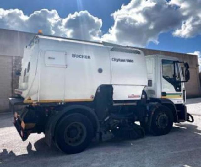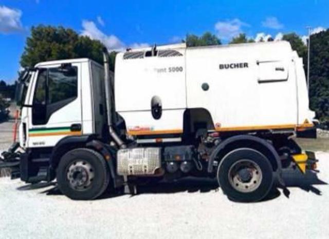 Iveco Eurocargo 120E210 anno 2017 con soli 85.000 km, allestito con spazzatrice stradale professionale Bucher CityFant 5000 da 5 m³.